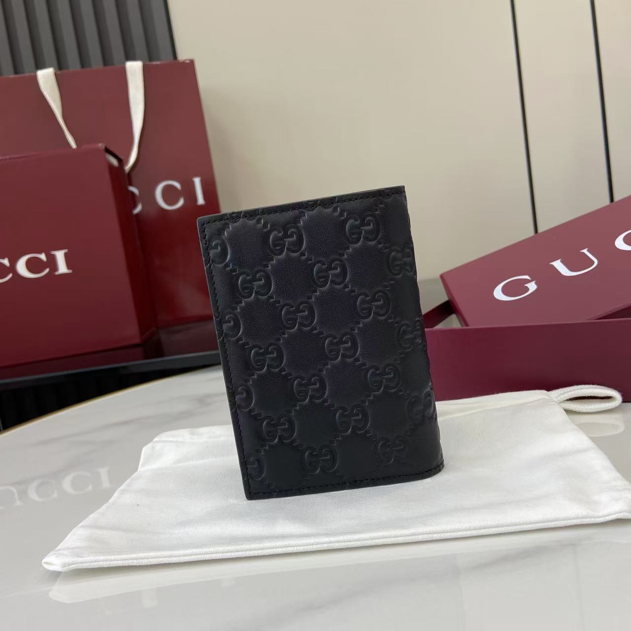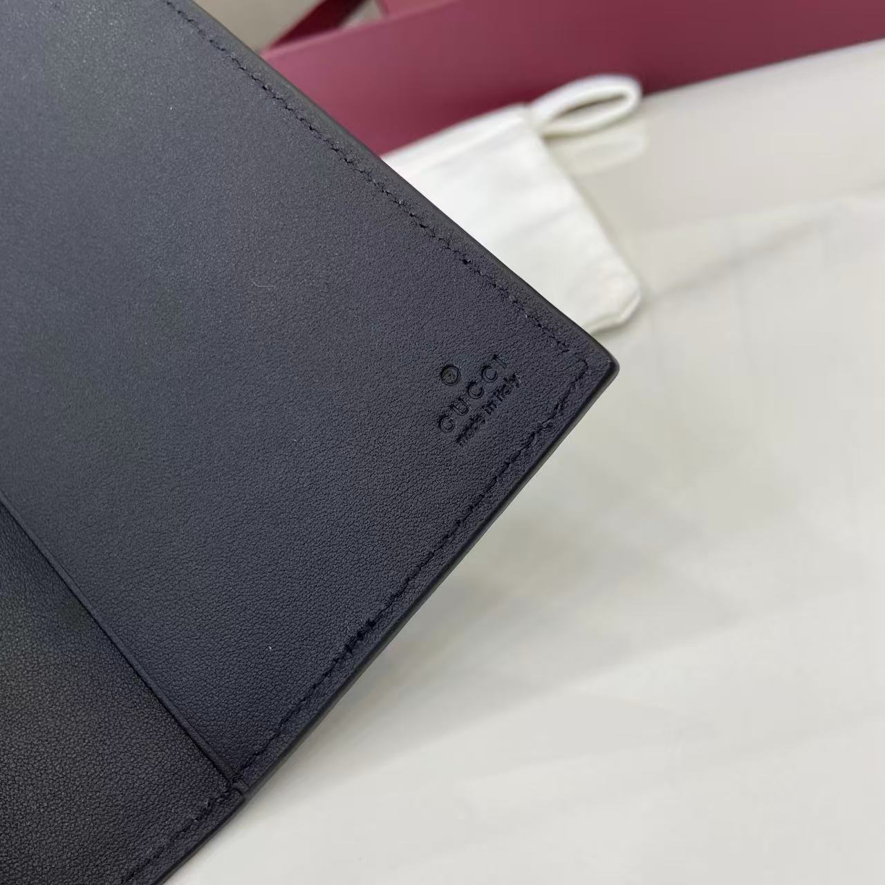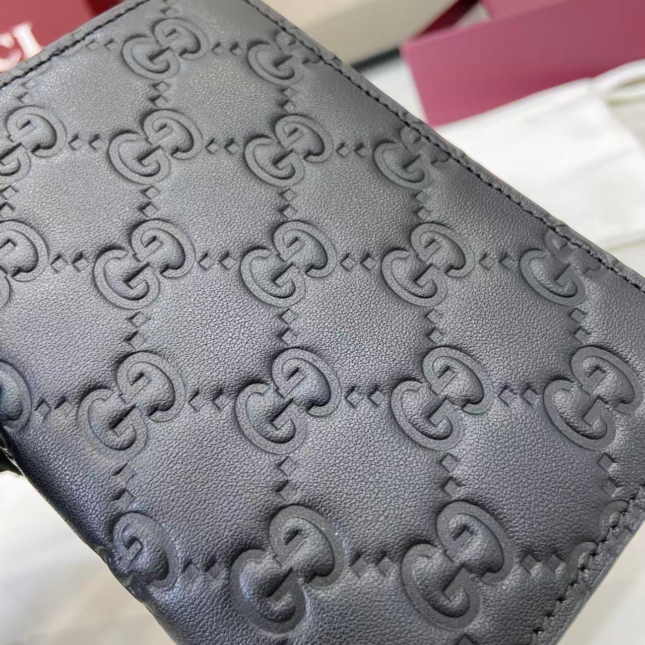 - Black GG embossed calfskin leather