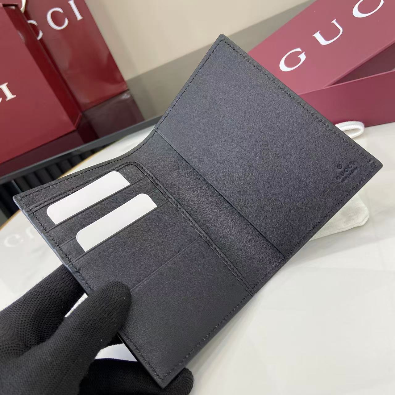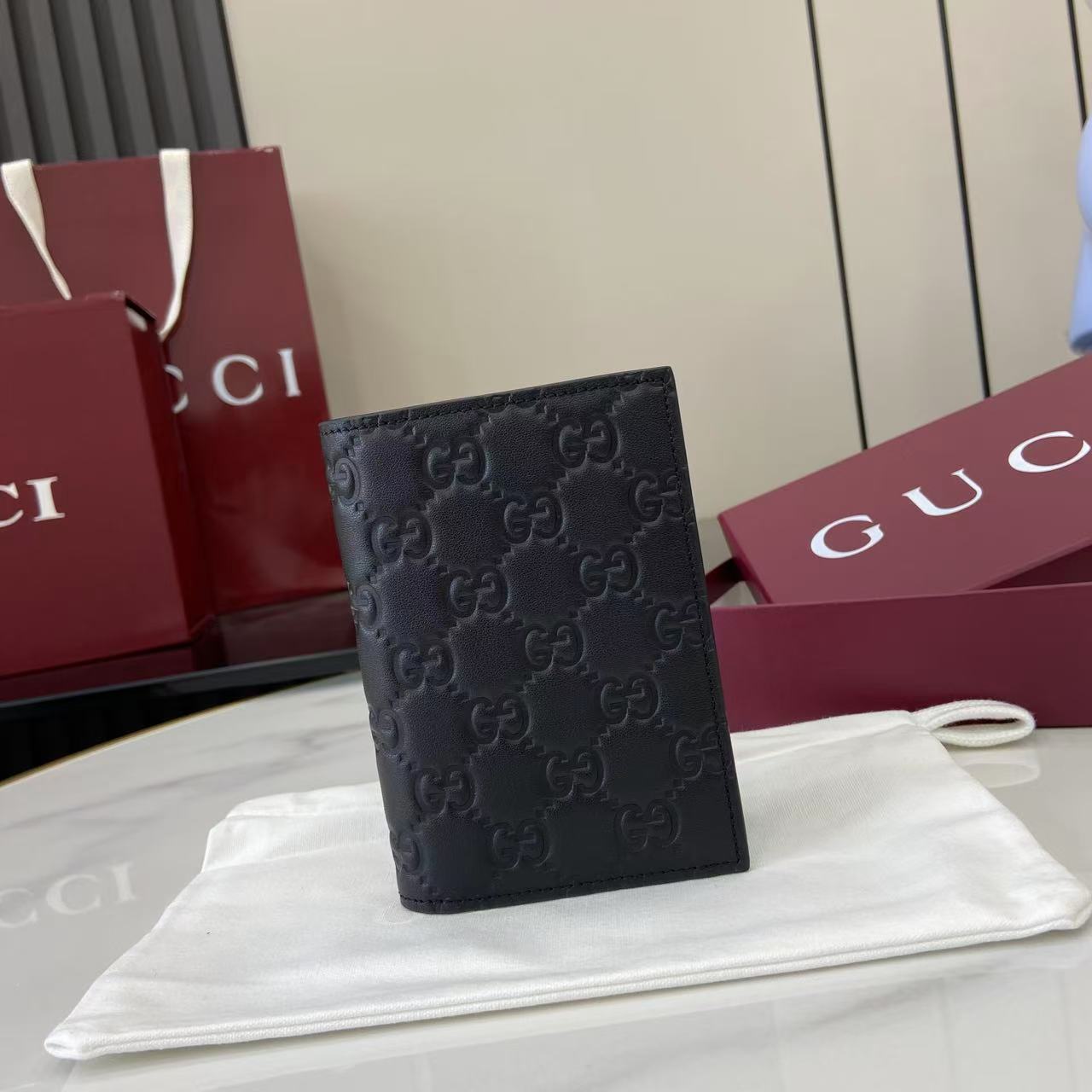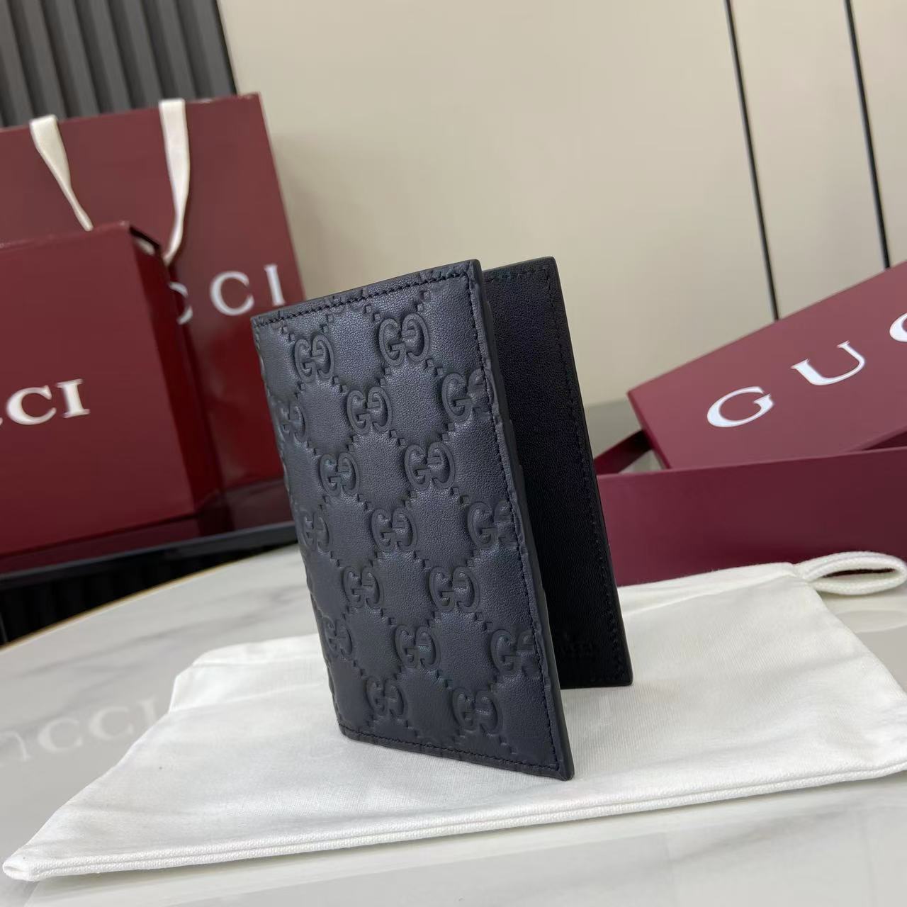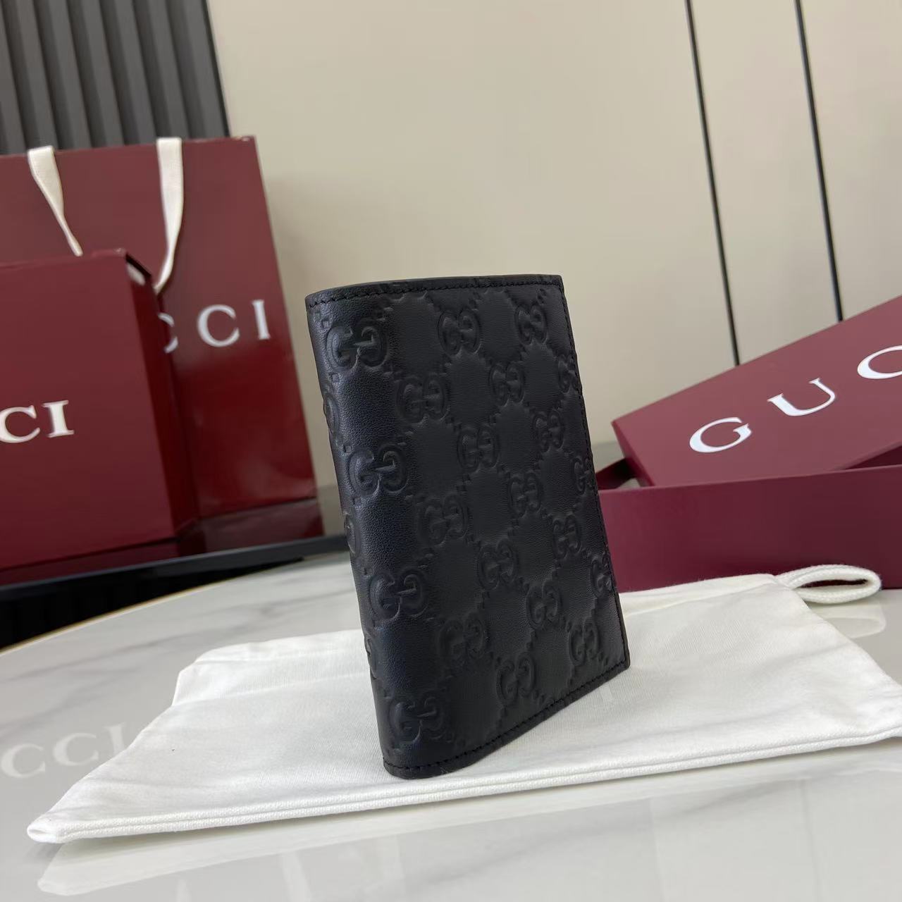 - Black GG embossed calfskin leather